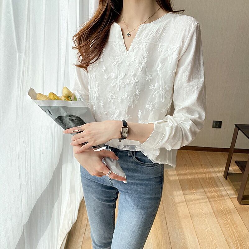 【春の最新作!】花柄レースブラウス ブラウス シャツ トップス 韓国ファッション 中国ファッション インポート 海外 セレクト カジュアル きれいめ 可愛い ギャル スタイル 母の日 花以外 韓国 韓国ファッション 中国ファッション 20 代 30代 40代 50代