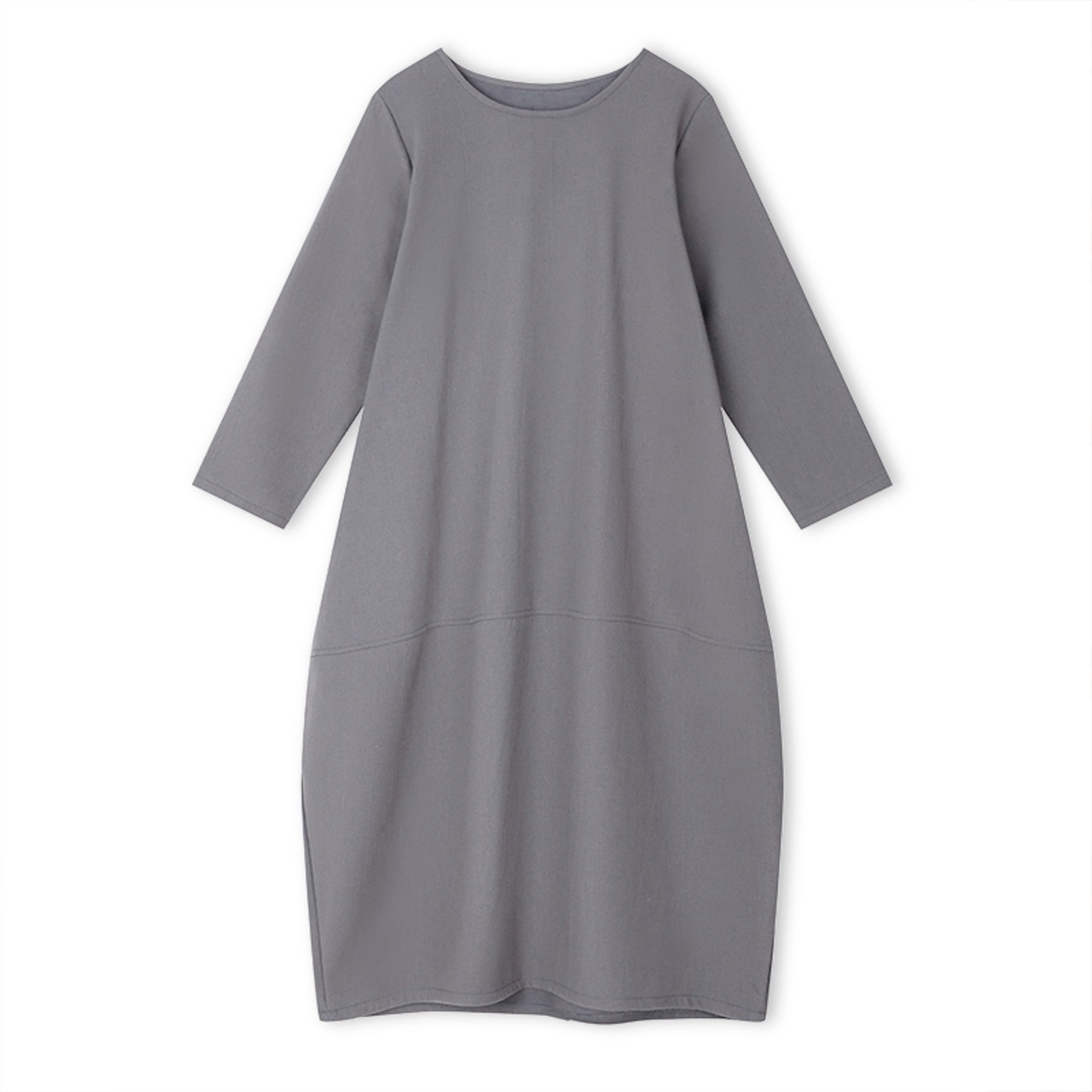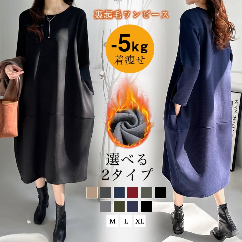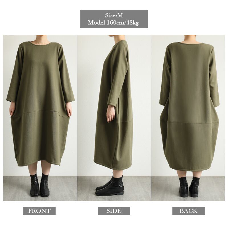 裏起毛 秋 冬 夏 七分袖 クルーネック ワンピース コクーンワンピース リネンタッチ ゆったり