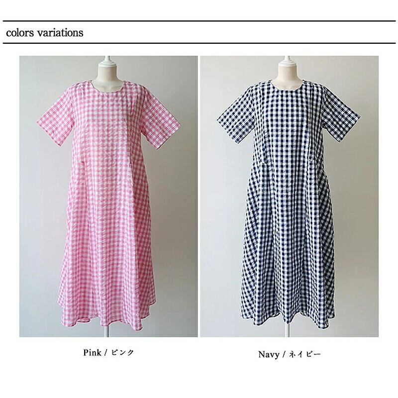 レディース ワンピース ギンガムチェック半袖ワンピース