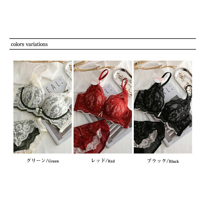 レディース インナー ブラジャー ショーツ セット ポリエステル レース 美胸 谷間UP 盛りブラ 補正ブラ