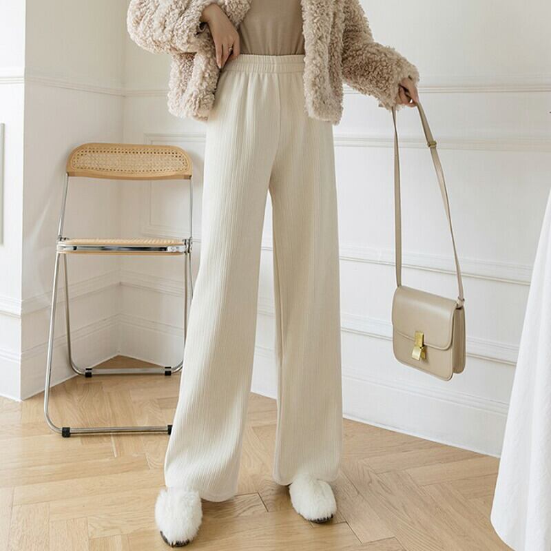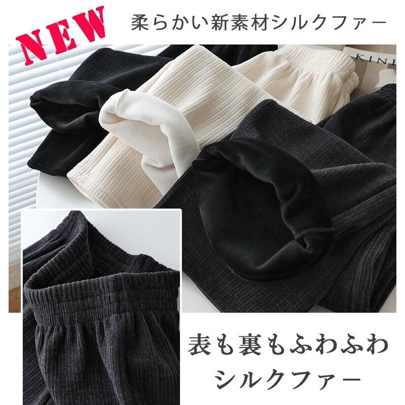 裏起毛 レディース ワイドパンツ 柔らかい シルクファー パンツ ボトムス 暖かい 防寒 シンプル