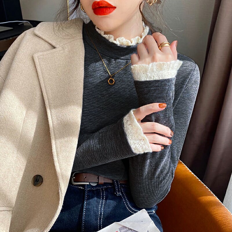 レディース プチフリル ハーフタートルネック 裏起毛 ニット セーター 長袖 おしゃれ シンプル 大人可愛い インナーニット 上品 トレンド 韓国 韓国ファッション オフィスカジュアル 通勤 通学 ママコーデ 秋 冬 秋冬 春 20代 30代 40代 50代 cocomomo ココモモ 冬服