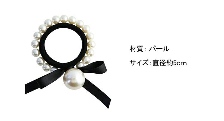 ヘアゴム レディース 髪留め パール ヘアゴム 大粒 シルバー 黒 リボン付き