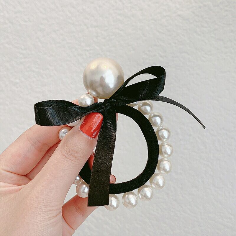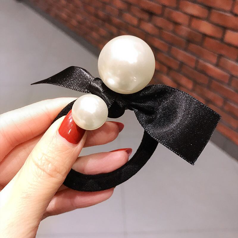 シンプルコーデに合う大粒パールのリボンゴム♪