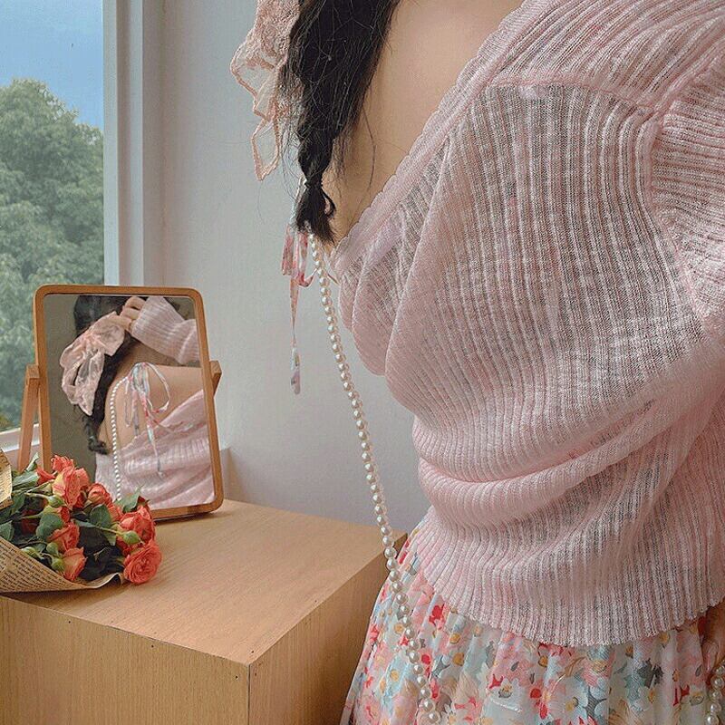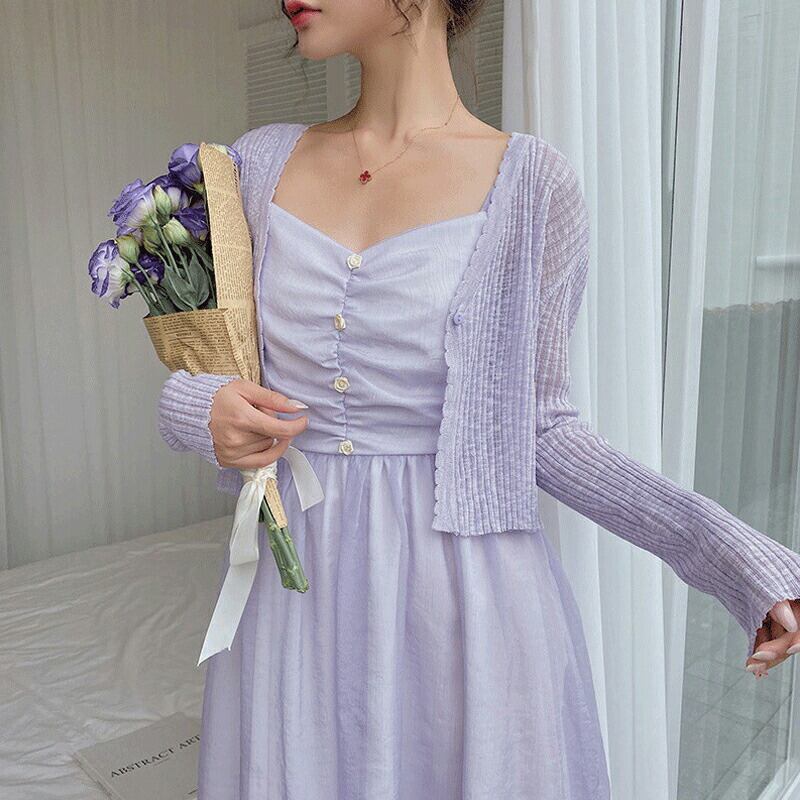くすみカラーのカーディガン。