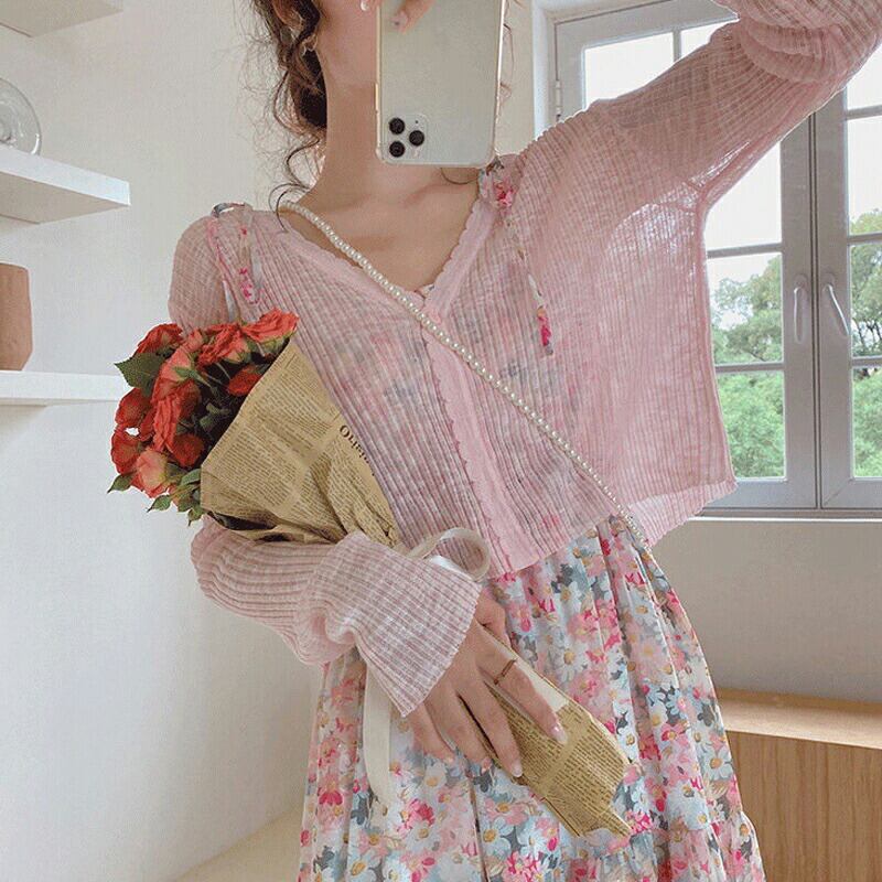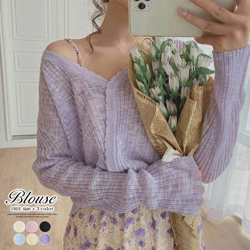 レディース ブラウス カーディガン Free 無地 長袖 Vネック アクリル