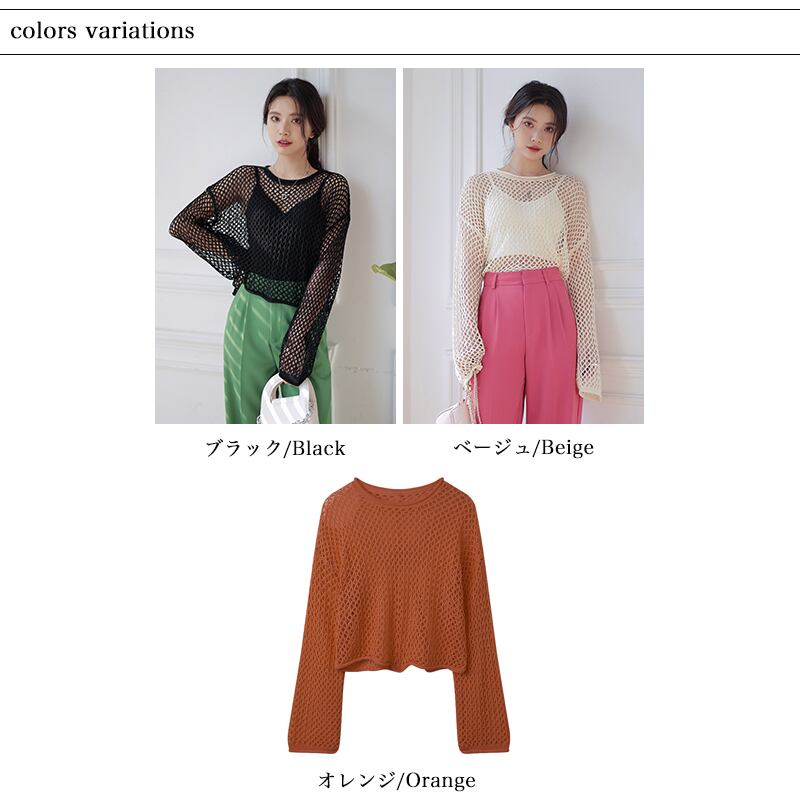 ニット 透かし編み サマーニット カギ編み トップス レディース 長袖 メッシュ編み カギ編み トップス おしゃれ ゆったり