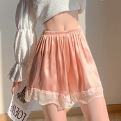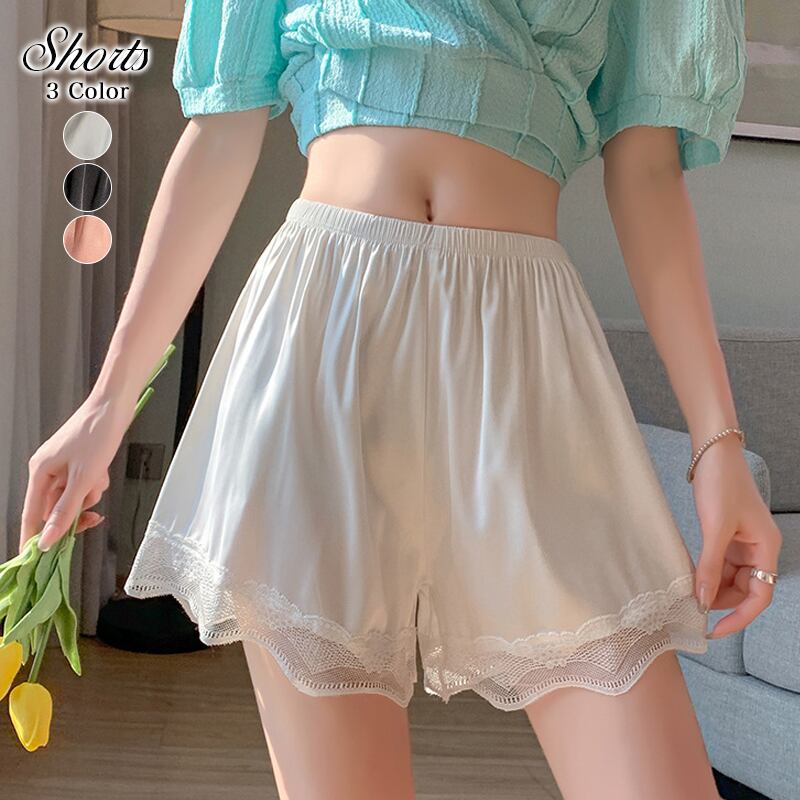 ペチコート ショーツ レース ショートキュロット インナー レディース ポリエステル レース シルクタッチ 下着 肌着 アンダーショーツ パンツ ママコーデ