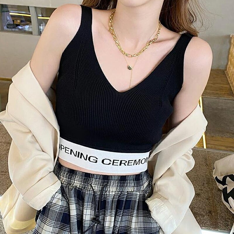 クロップニットキャミトップ ショート丈キャミソール スポーディ