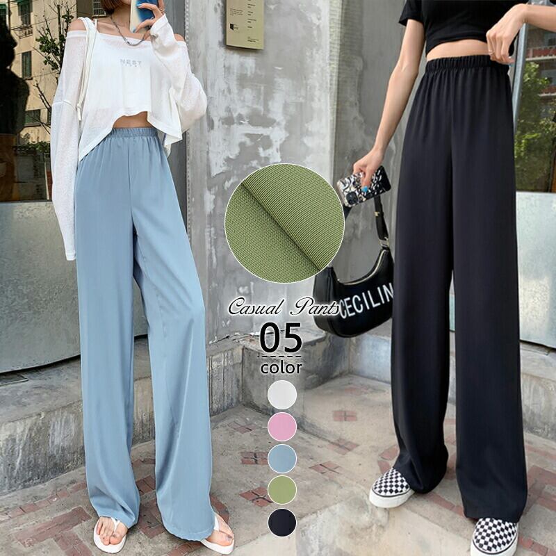 ワイドパンツ ハイウエスト カラーパンツ ウエストゴム ボトムス レディース セミワイドパンツ パンツ ズボン スラックス おしゃれ 無地 大人 上品