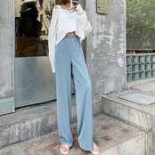 レディースセミワイドパンツ ハイウエストカラーパンツ ウェストゴム入りボトムス