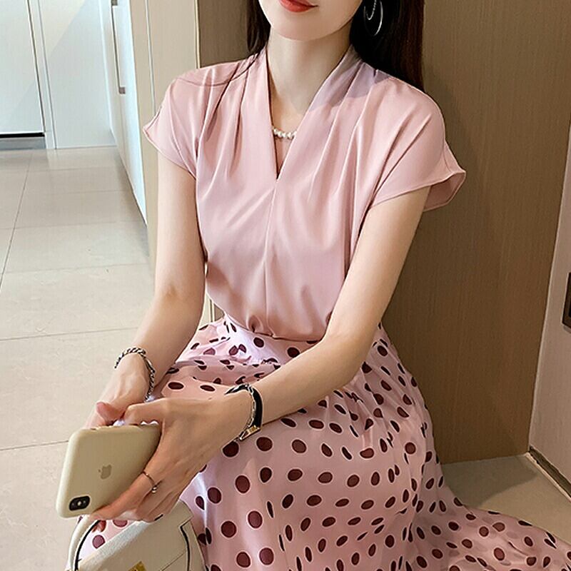 ブラウス スキッパーシャツ フレンチスリーブ 半袖 ショート丈トップス チュニック カットソー オフィス トップス シフォン レディース Vライン スキッパー ノースリーブ 無地 カジュアル フォーマル 春 夏 秋 韓国 韓国ファッション | COCOMOMO select