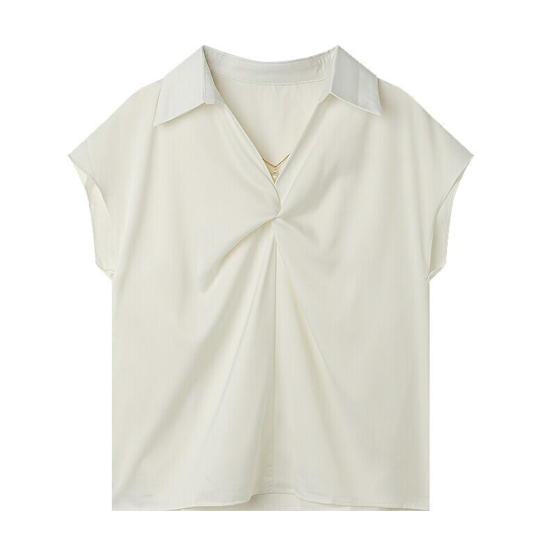 ブラウス 半袖夏トップス フレンチスリーブ 半袖 ショート丈トップス シャツ チュニック カットソー オフィス オフィスブラウス 夏トップス トップス シフォン サテン レディース ノースリーブ カシュクール 無地 シンプル Vネック サマーブラウス