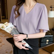 シフォンブラウス フレアスリーブブラウス とろみシャツブラウス ブラウス レディース 半袖 半袖ブラウス シフォン カットソー トップス 夏トップス
