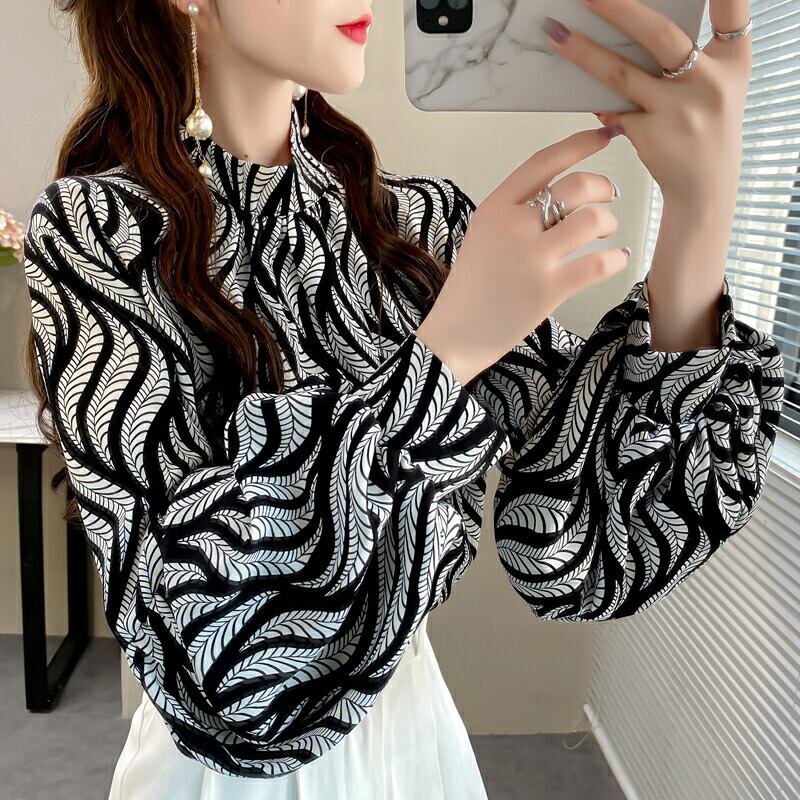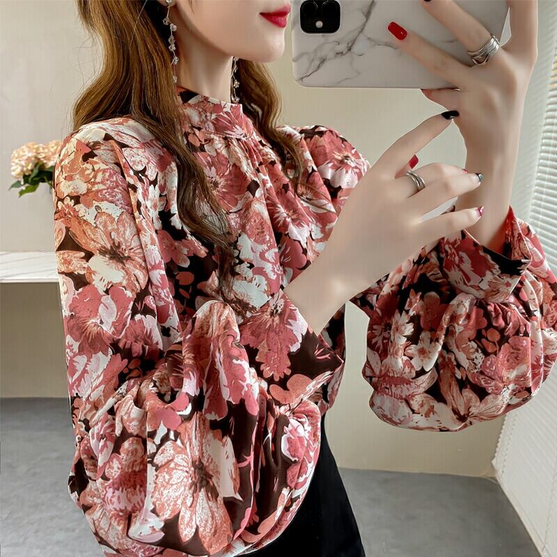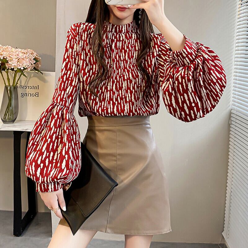 ブラウス ランタンスリーブブラウス ボリュームスリーブ バルーンスリーブ ハイネック レディース ボリューム袖 バルーン袖 シフォン 長袖 大人 パーティー トップス オフィス オフィスカジュアル モード 春 夏 秋 冬 韓国 韓国ファッショ
