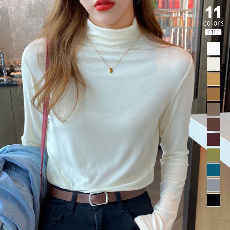 ハイネック 長袖Tシャツ 選べる11カラー長袖トップス タートルネック トップス 長袖 秋冬 インナー レディース カットソー タイト セクシー ロンT オフィス オフィスカジュアル カジュアル 大人 春服 秋服 冬服 春 秋 冬 韓国 韓国ファッション | COCOMOMO select