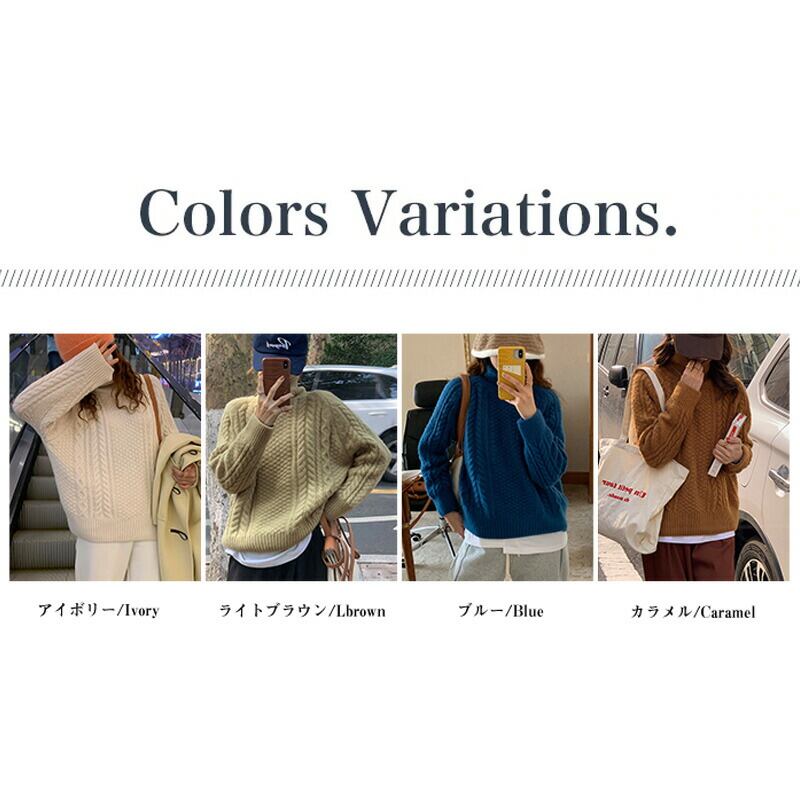 セーター ケーブル編みニット タートルネックセーター ニット レディース トップス タートルネック ケーブル編み 長袖 秋冬 プルオーバー ニットセーター ゆったり 袖 リブ 生地 フリーサイズ 伸縮性 ストレッチ シンプル 無地 暖かい あったか チクチク しない やわらかい やわらか ふんわり ソフトな肌触り オフィス オフィスカジュアル カジュアル きれいめ 大人 可愛い おしゃれ 上品 通勤 通学 楽ちん プチプラ 高見え 白 青 薄茶 茶 春服 秋服 冬服 春 秋 冬 韓国 韓国ファッション 20代 30代 40代 50代 cocomomo ココモモ