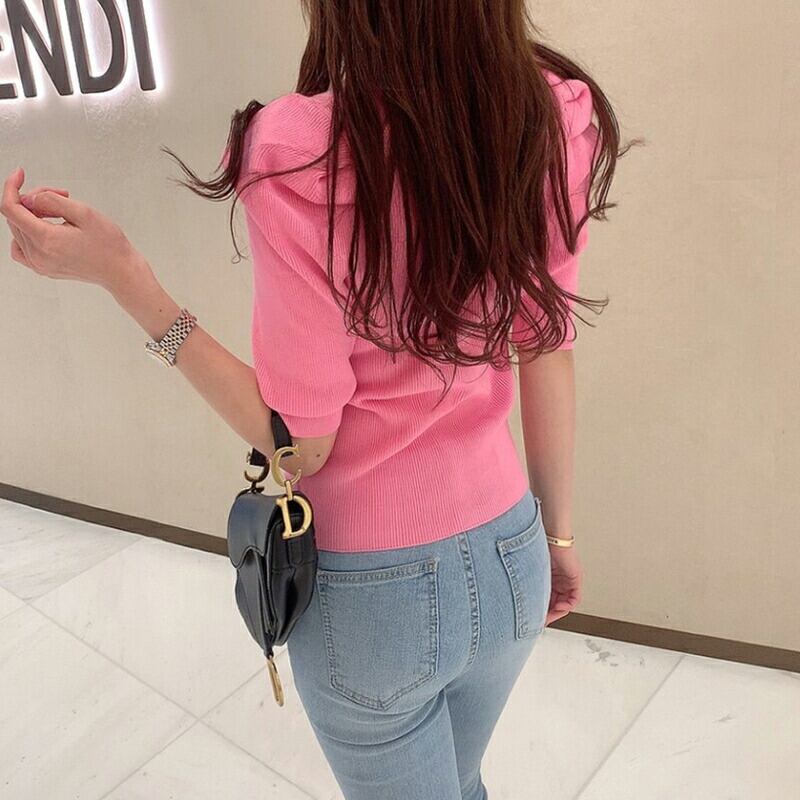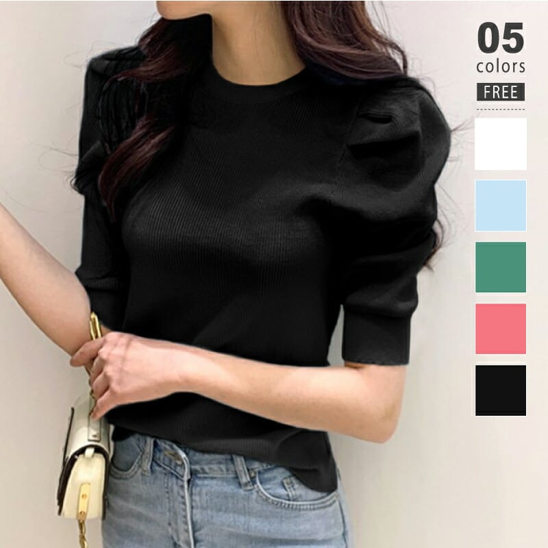 パワショル ニット サマーニット パワショルニット パワーショルダー セーター ニットセーター クルーネック ニット生地 パフスリーブ トップス 細見え 五分袖 半袖 タイト フィット ボリューム袖 ボリュームスリーブ ボリューム 肩 体型カバー tops ぽわん袖 ぽわん ポワン袖 プルオーバー リブ リブニット セクシー ノーアイロン シンプル 無地 セクシー ギャザー ヤク風 ヤク風ニット ふんわり やわらか やわらかい ソフトな肌触り チクチクしない ストレッチ 伸縮性 オフィス オフィスカジュアル カジュアル エレガント フェミニン 上品 きれいめ 大人 かわいい 大人可愛い おしゃれ 通勤 通学 仕事 OL ビジネス プチプラ 高見え 白 桃色 水色 緑 黒 春夏新作 春夏 春 夏 秋 春服 夏服 秋服 韓国 韓国ファッション