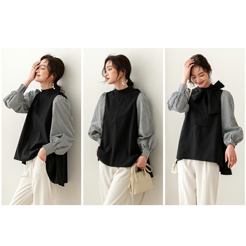 リボンブラウス ボリュームスリーブブラウス ボウタイブラウス ブラウス スタンドカラー シャツ レディース ボウタイ リボンタイ 立ち襟 リボン パフスリーブ コットン ストライプ 綿 トップス ハイネック プチハイネック ボリューム袖 ボリュームスリーブ バルーン袖 バルーンスリーブ パフスリーブ パフスリーブトップス ぽわん 袖 ぽわん袖 プルオーバー 1枚で決まる 柄 ストライブ ギンガムチェック 大きいサイズ シャツ・ブラウス 体型カバー ゆったり オフィス オフィスカジュアル カジュアル フォーマル 華やか 大人 きれいめ かわいい 可愛い おしゃれ オシャレ 通勤 通学 入学式 入園式 卒園式 卒業式 ママコーデ ママ 母 黒 白 青 春服 夏服 秋服 春夏 春 夏 秋 韓国 韓国ファッション 10代 20代 30代 40代 50代 cocomomo ココモモ