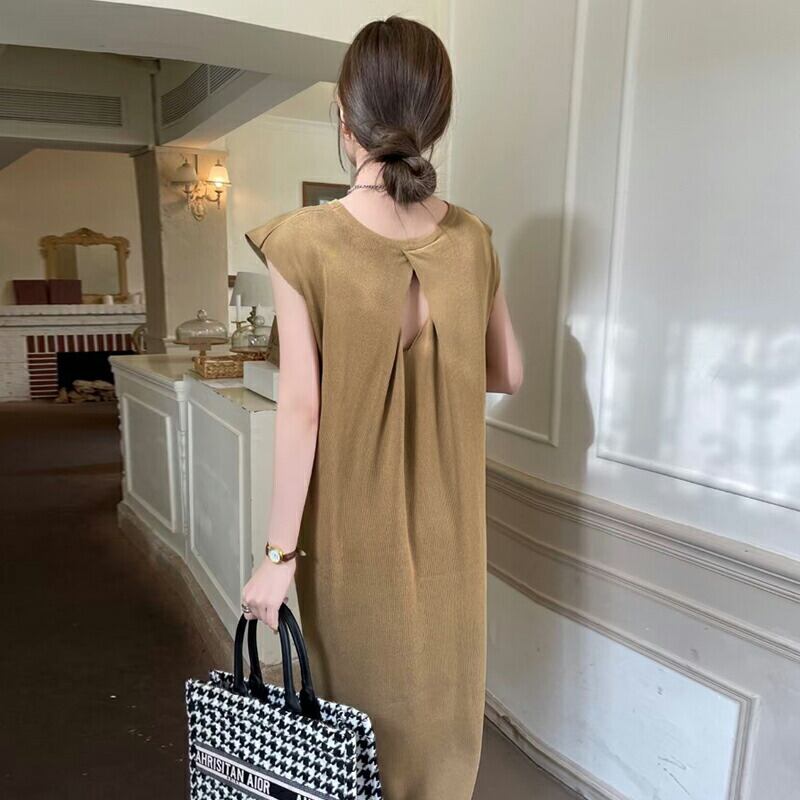 ワンピース ロングワンピース フレンチスリーブ レディース マキシ マキシ丈 マキシワンピース ロング ロング丈 iライン ワンピ シンプル 無地 ノースリーブ セクシー 細見え 背中 クルーネック ラウンドネック ノーカラー さらさら 涼しい 1枚で決まる らくちん ポリエステル プチプラ リラックス リゾート ナチュラル エレガント カジュアル 上品 きれいめ 大人 かわいい 大人可愛い おしゃれ ママ ママコーデ 母 白 薄茶 茶 黒 春夏 春 夏 秋 春服 夏服 秋服 韓国 韓国ファッション 20代 30代 40代 50代 cocomomo ココモモ