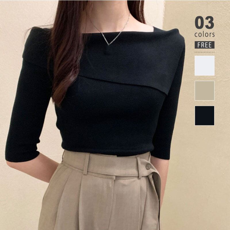 オフショルダー ニット トップス サマーニット レディース オフショル セクシー セーター 五分袖 スクエアネック アシンメトリー tops タイト フィット 薄手 細見え プルオーバー アクリル やわらかい やわらか ソフトな肌触り チクチクしない ヤク風 ヤク風ニット 長袖 無地 伸縮性 ストレッチ 背中開き オフィス オフィスカジュアル エレガント カジュアル 上品 大人 きれいめ かわいい 大人可愛い おしゃれ プチプラ 白 黒 肌色 春コーデ 春服トップス 春夏 春服 夏服 秋服 春 夏 秋 韓国 韓国ファッション 20代 30代 40代 50代 cocomomo ココモモ