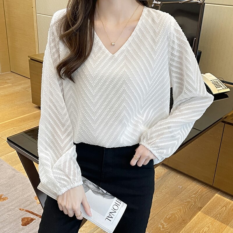 ブラウス ボリュームスリーブ vネックブラウス レディース トップス シアー シースルー vネック ゆったり 大きいサイズ 体型カバー 長袖 シフォン ボリューム袖 ボリュームスリーブ ぽわん袖 バルーンスリーブ 薄手 春 夏 韓国 韓国ファッション