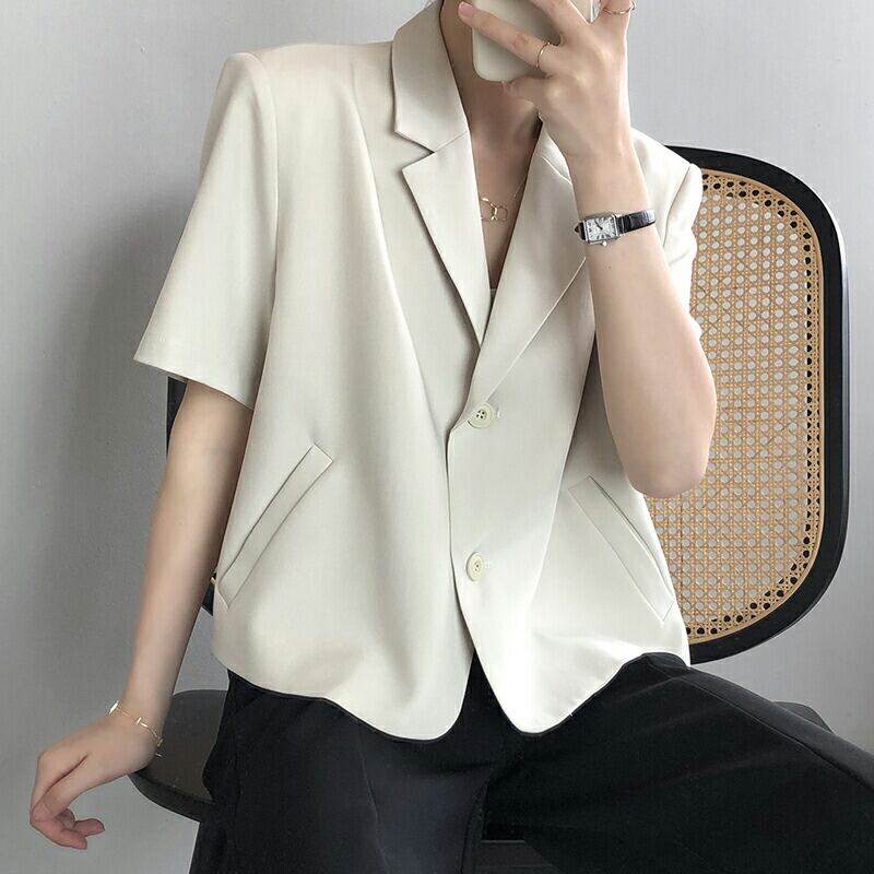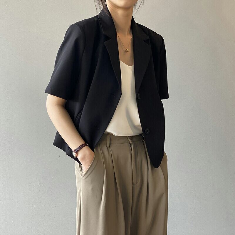 テーラードジャケット 半袖 レディース 夏 ジャケット テーラード サマージャケット ショート クロップド ライトアウター アウター 薄手 襟付き フォーマル セレモニー オフィス オフィスカジュアル きれいめ 大人 通勤 通学 韓国 韓国ファッション
