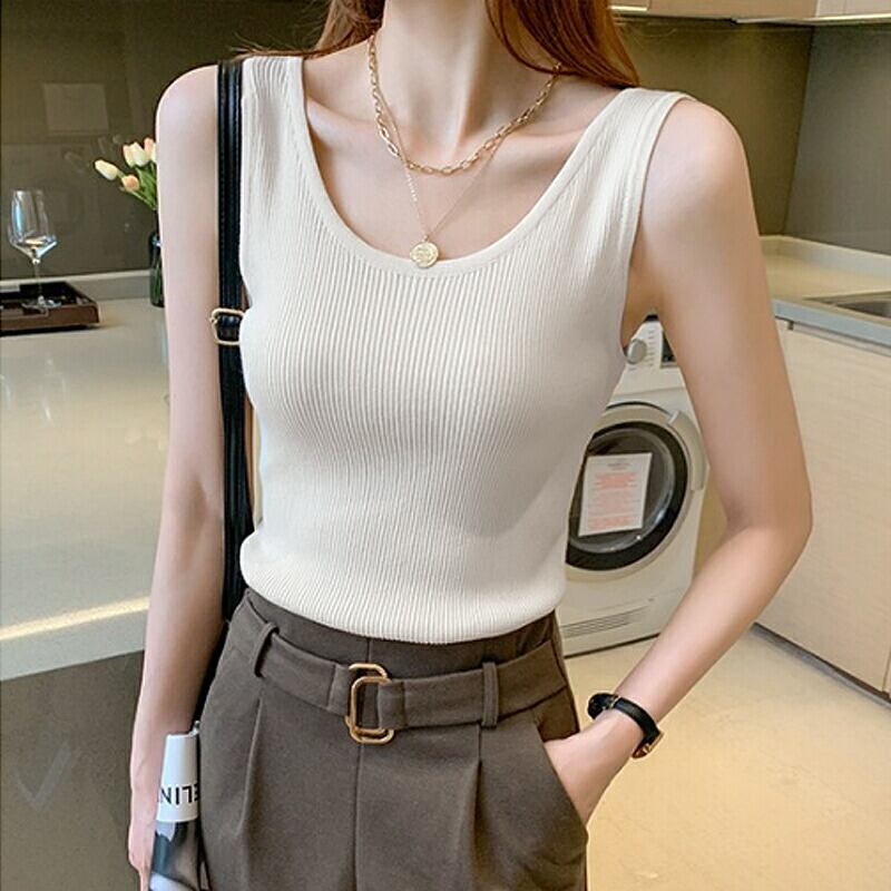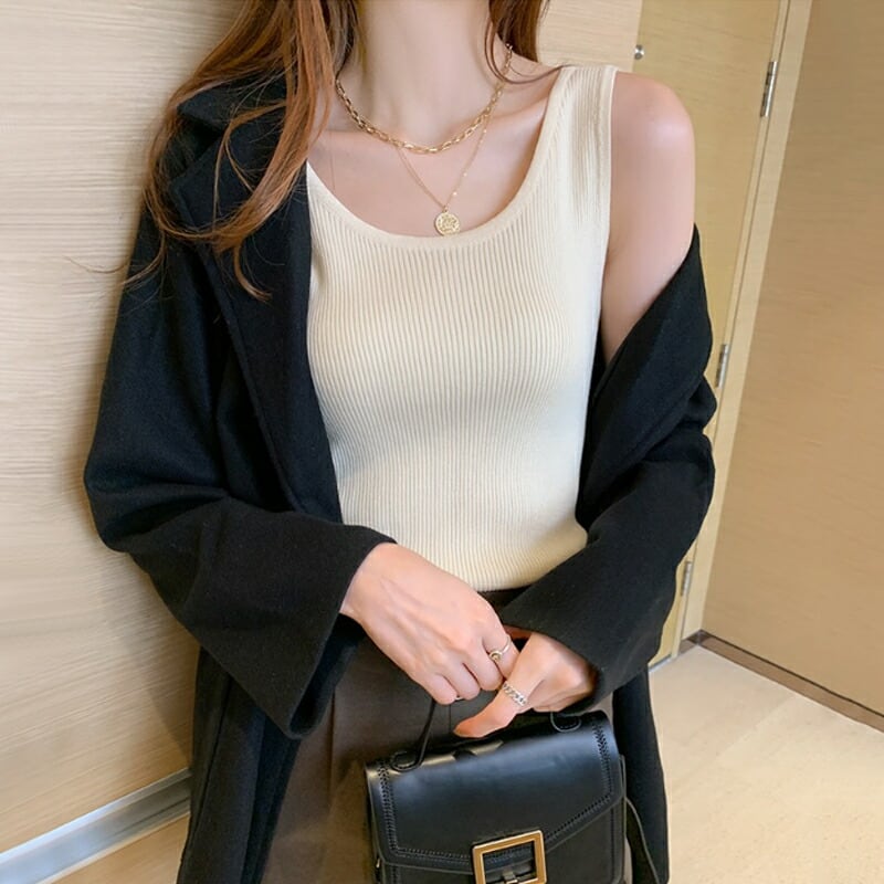 タンクトップ リブタンクトップ サマーニット トップス レディース ノースリーブ 袖なし レイヤード 重ね着 無地 シンプル uネック 下着 インナー リブ ニット ブラ紐 無地 レイヤード ベーシック 上品 きれいめ 大人 夏 韓国 韓国ファッション