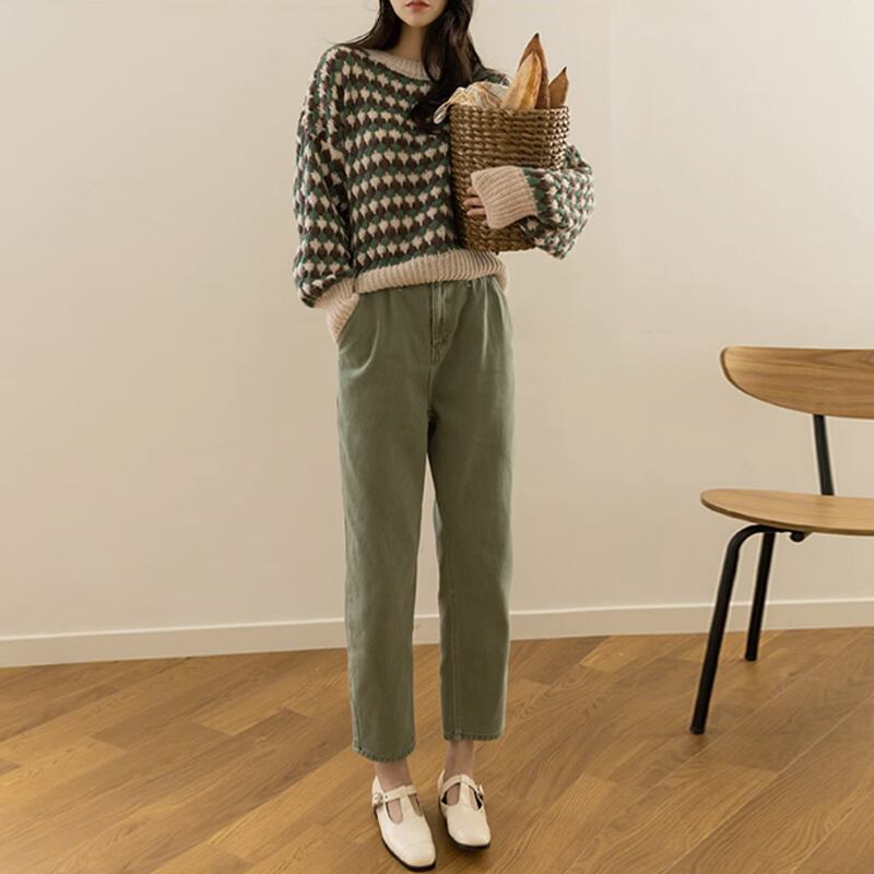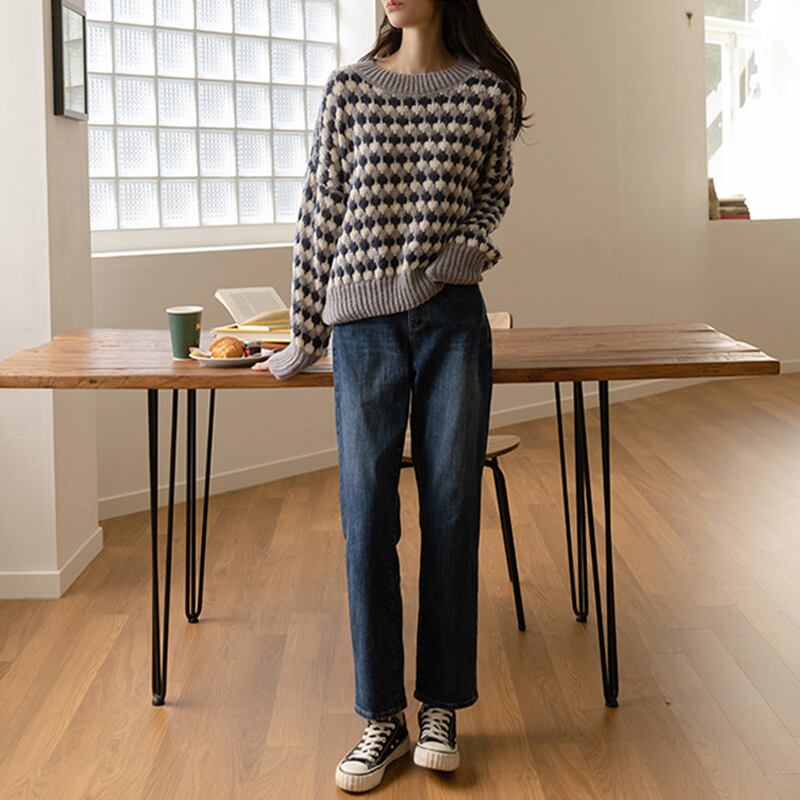 レトロ柄ニットセーター セーター もちもちニット ニット セーター レディース ニットセーター レトロ 長袖 レトロ柄 トップス ゆったり 大きめ クロップド丈 プルオーバー チクチクしない 暖かい 可愛い おしゃれ 秋冬 秋 冬 韓国 韓国ファッション | COCOMOMO select