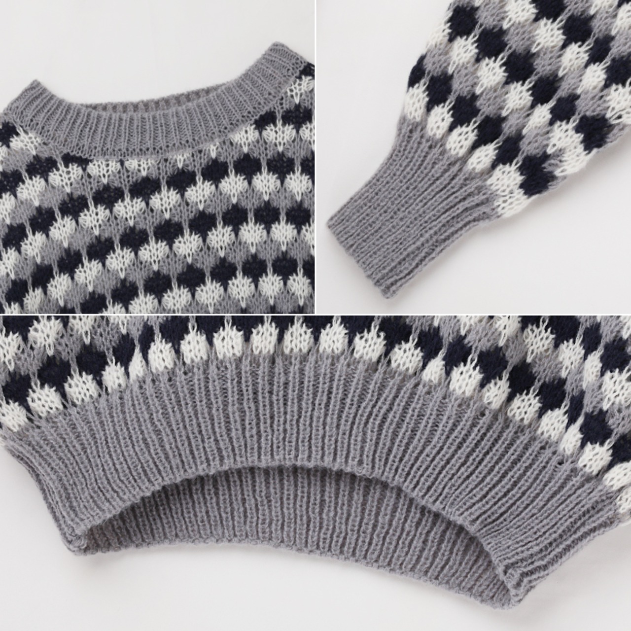 ニット セーター レディース ニットセーター レトロ 長袖 レトロ柄 トップス ニットトップス ラウンドネック 丸首 丸襟 総柄 柄 ニットレディース ゆったり 大きめ クロップド クロップド丈 プルオーバー tops 着回し 伸縮性 ストレッチ 袖 長め ざっくり 生地 ロングスリーブ ドロップショルダー 肩 ボリューム ボリューム袖 ボリュームスリーブ アクリル 柔らかい やわらかい やわらか なめらか ふんわり もちもち チクチクしない チクチクしにくい ヤク風 ヤク風ニット 暖かい あたたかい あったか レイヤード 重ね着 個性派 個性的 フェミニン ガーリー カジュアル 大人 オトナ かわいい 可愛い 大人可愛い おしゃれ オシャレ 秋色 新作 2023aw 2023AW 23年 2023 秋冬新作 秋冬 秋 冬 秋服 冬服 韓国 韓国ファッション 10代 20代 30代 40代 50代 60代 cocomomo ココモモ