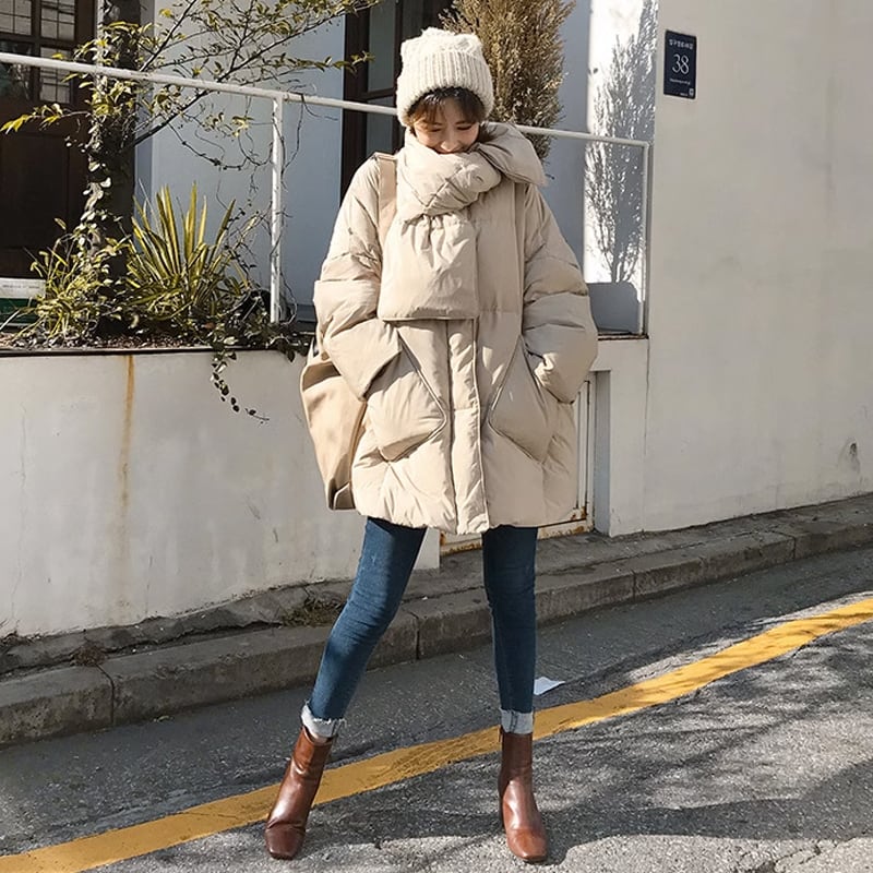 ダウンコート マフラー付き ダウンジャケット レディース ダウン アウター コート ノーカラーコート ミドル丈 ジャケット 軽量 大きめ もこもこ あったか 厚手 長袖 オーバーサイズ 防寒 オフィス オフィスカジュアル 秋 冬 韓国 韓国ファッション
