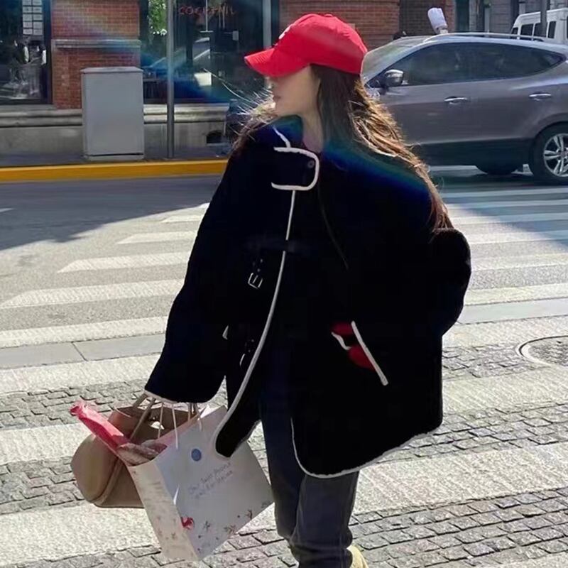 フード付きブルゾン ボアブルゾン パイピング ボア ジャケット フード付き レディース ブルゾン ボアジャケット アウター コート 長袖 ゆったり 大きめ 体型カバー ベルト付き ミドル丈 あったか 厚手 カジュアル 秋冬 秋 冬 韓国 韓国ファッション