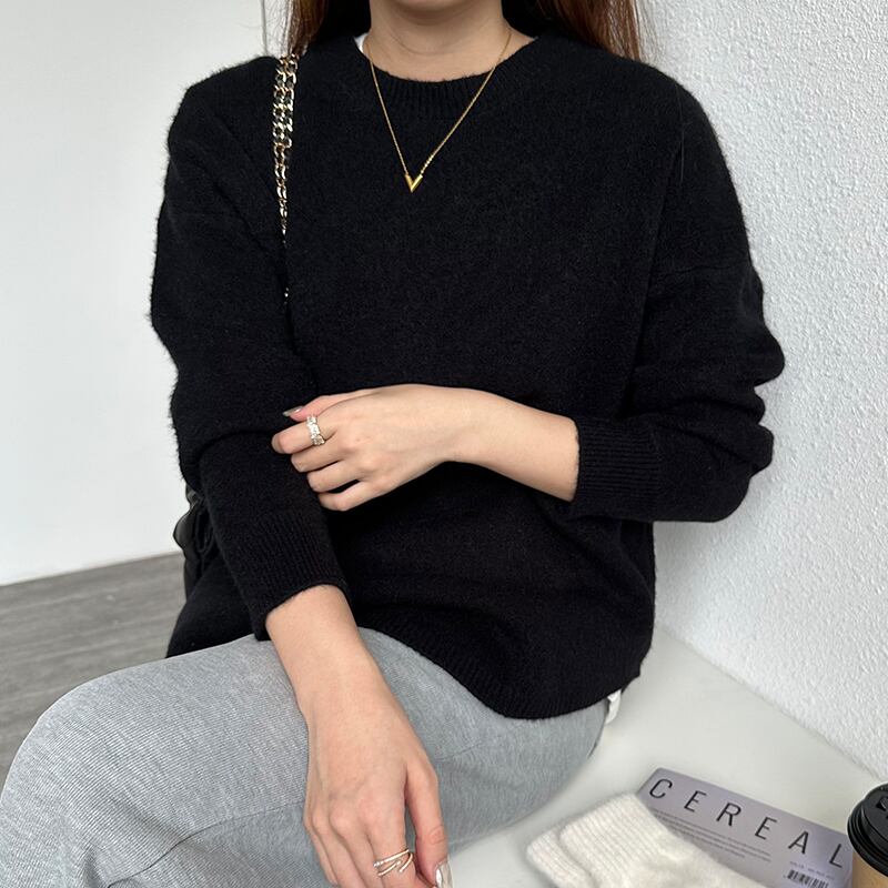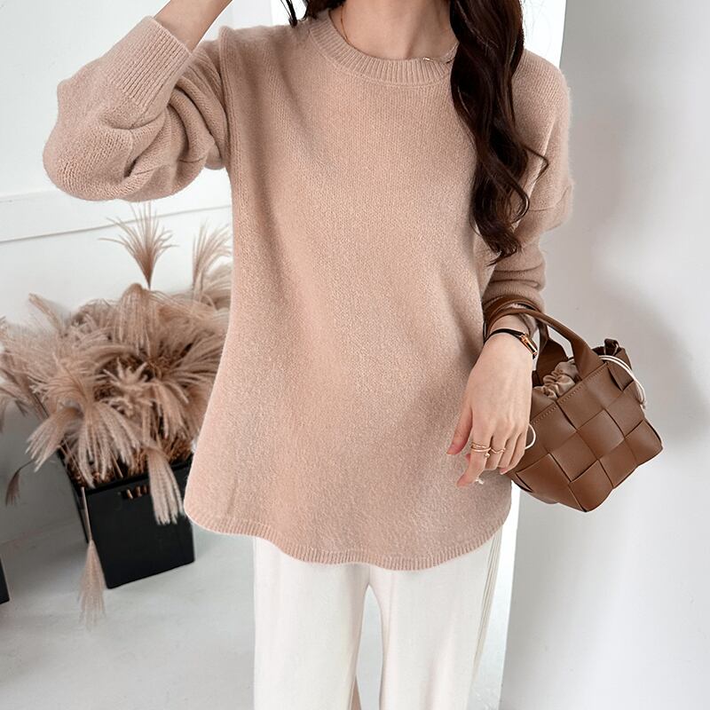 ハイゲージニット ニットセーター ラウンドヘム ニット クルーネック セーター レディース ゆったり やわらか 長袖 トップス プルオーバー ドロップショルダー リブ あったか オフィス オフィスカジュアル 大人 秋冬 秋 冬 韓国 韓国ファッション