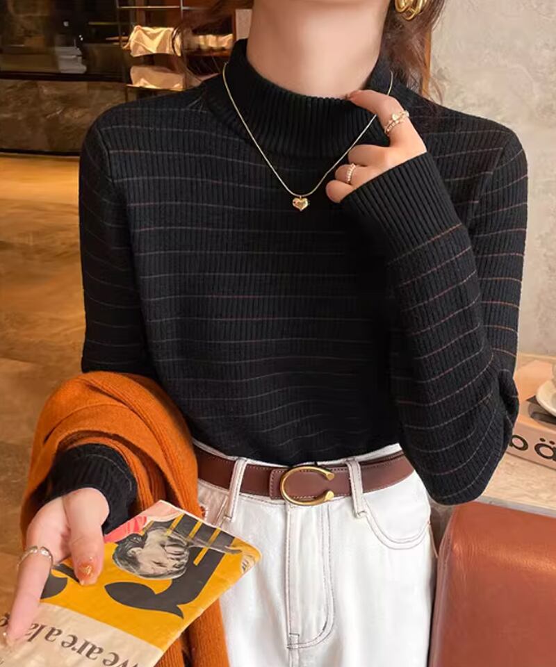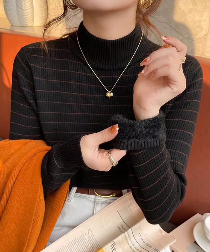 【裏起毛】 ボーダーハイネック リブニット ハイネック ボーダー 裏起毛ニット ニット セーター レディース タートル トップス インナー 長袖 ロンt ニットセーター 暖かい もちもち オフィス オフィスカジュアル 秋冬 秋 冬 韓国 韓国ファッション | COCOMOMO select