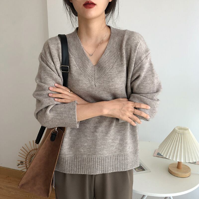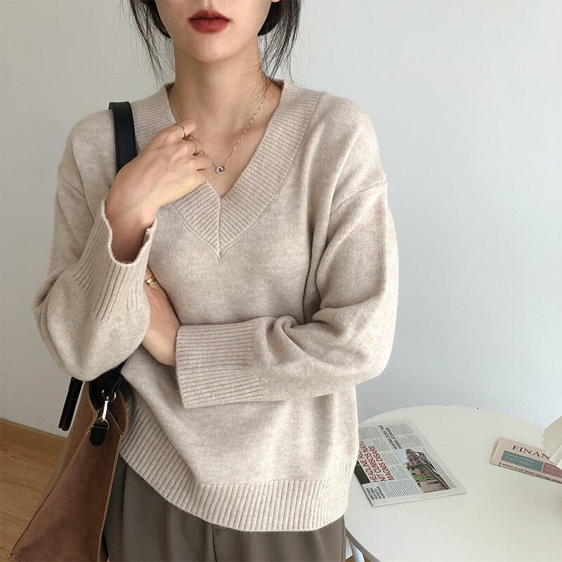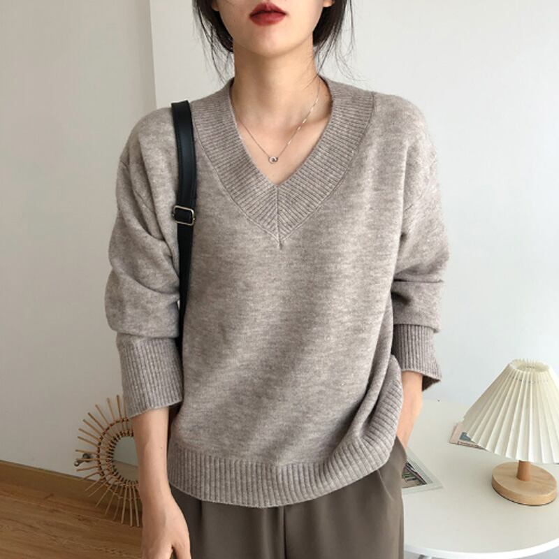 Vネックニット Vネックセーター ゆったりニット ニット セーター レディース トップス ゆったり 大きいサイズ 長袖 秋冬 シンプル ストレッチ 暖かい オフィス オフィスカジュアル きれいめ 大人 春服 秋服 冬服 春 秋 冬 韓国 韓国ファッション